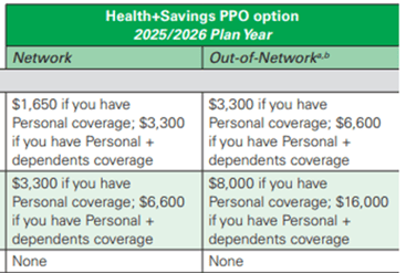 - Health+Savings PPO – a high-deductible plan that allows you to contribute to an HSA