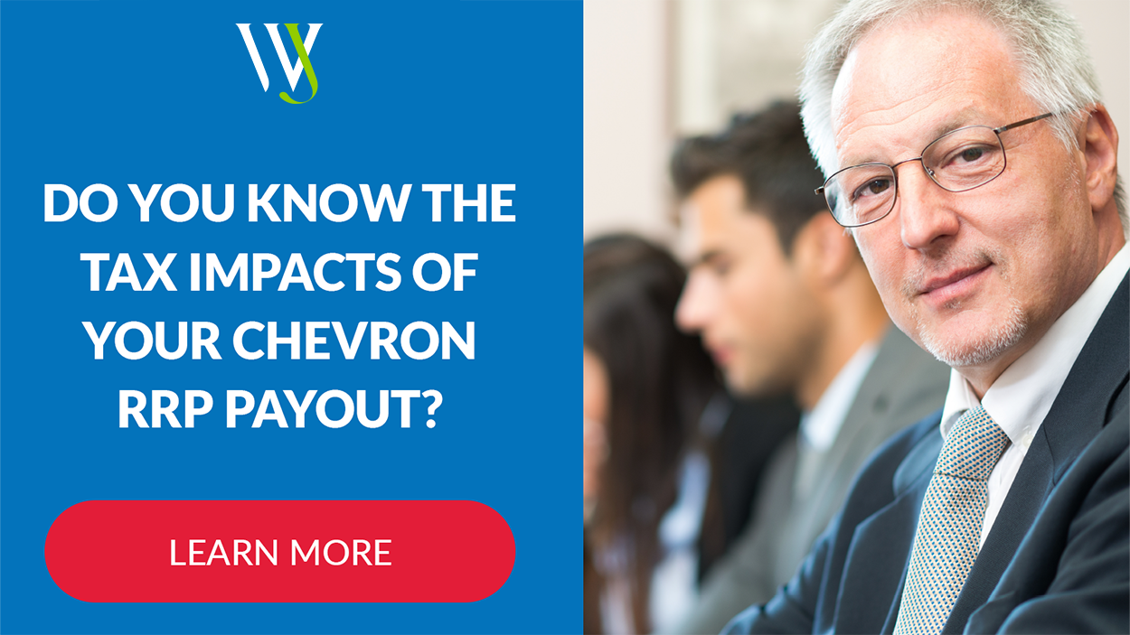 Understanding the potential payout value allows you to assess the potential tax impacts of each distribution method so that you maximize the after-tax value of the benefit! For many Chevron employees, the RRP lump sum election is the appropriate election. However, installments may make sense in some circumstances. For instance, if your spouse plans to continue working after you retire, receiving the RRP lump sum in a presumably high-income year could cause a more significant portion of that payout to be taxed at the highest tax bracket.
