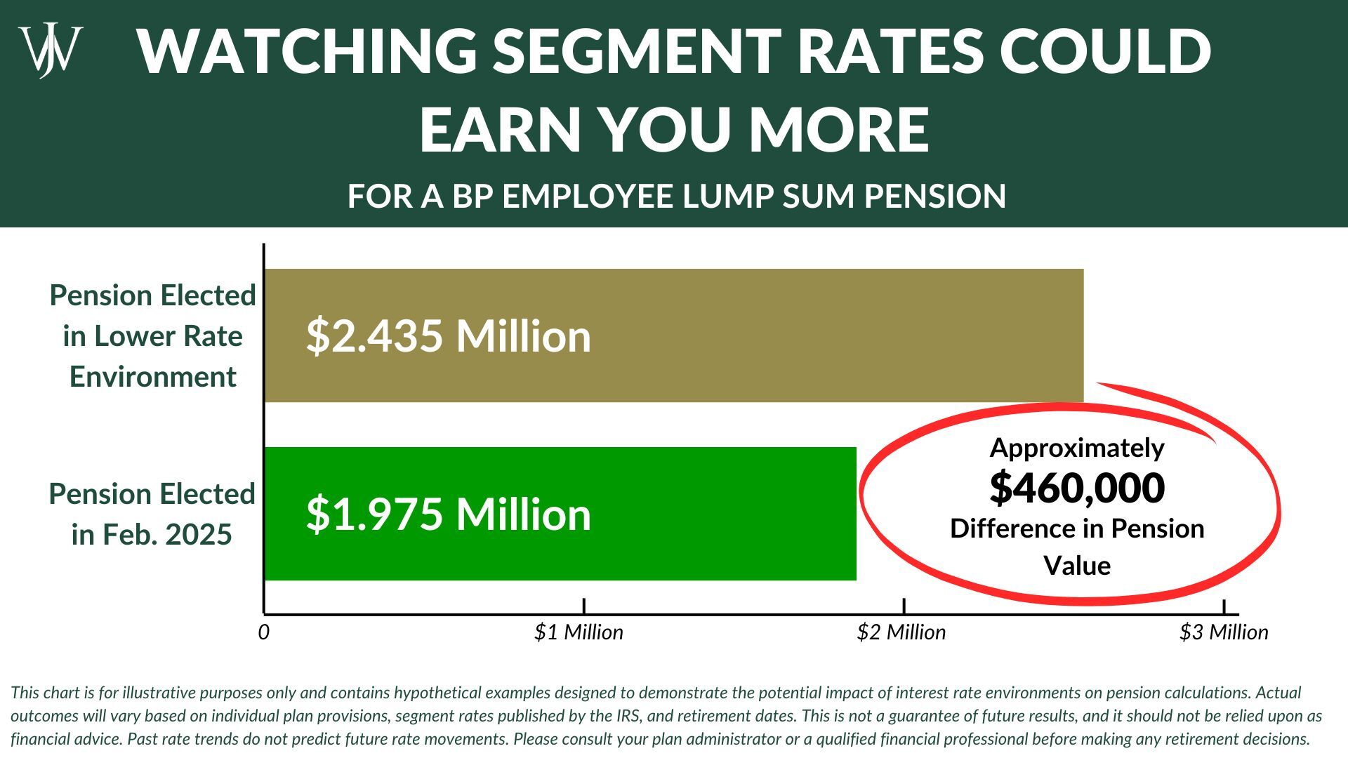When determining your retirement date, electing a month with historically higher segment rates, can significantly lower your lump sum pension calculation compared to if you chose a month with lower rates. Remember: There’s an inverse relationship between segment rates and the value of the lump sum pension.